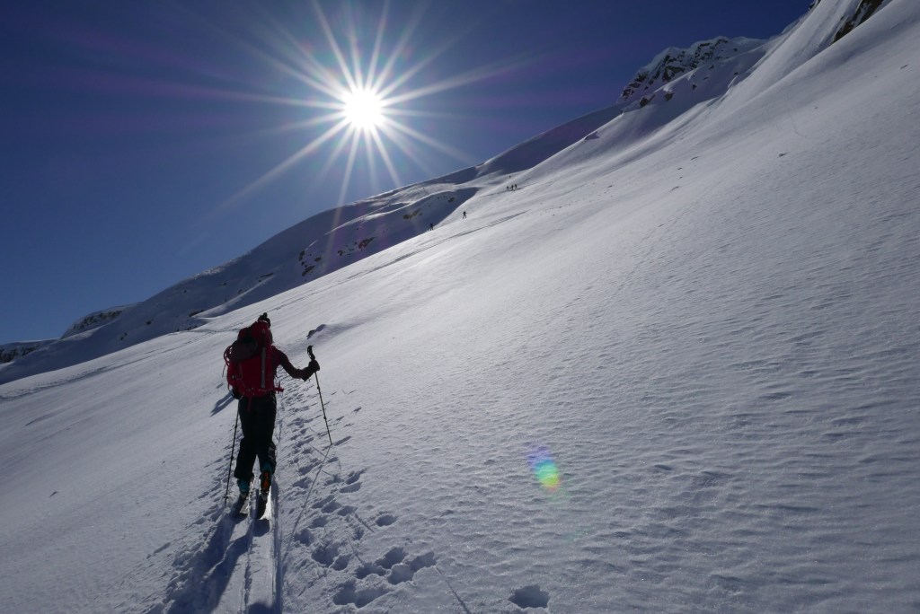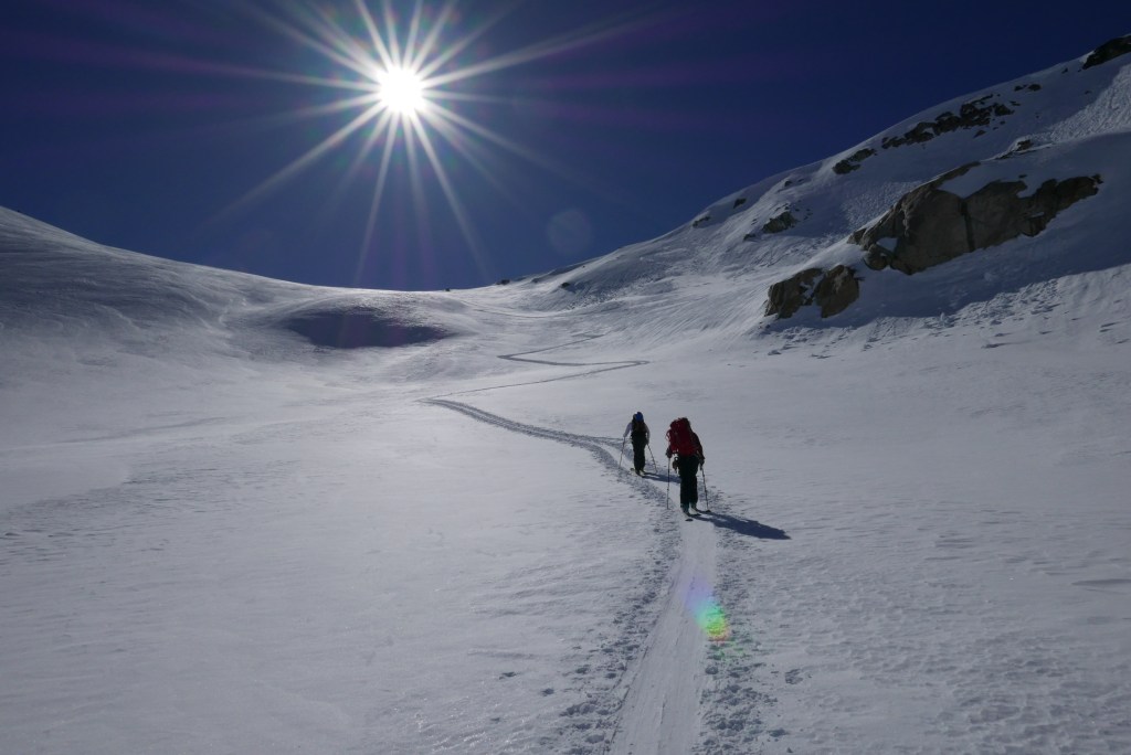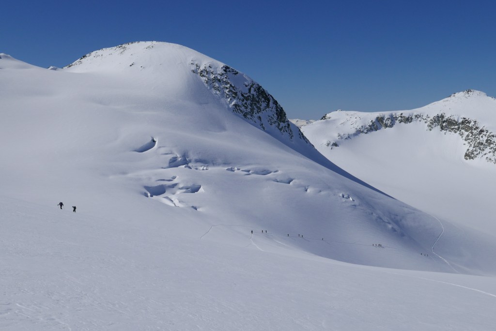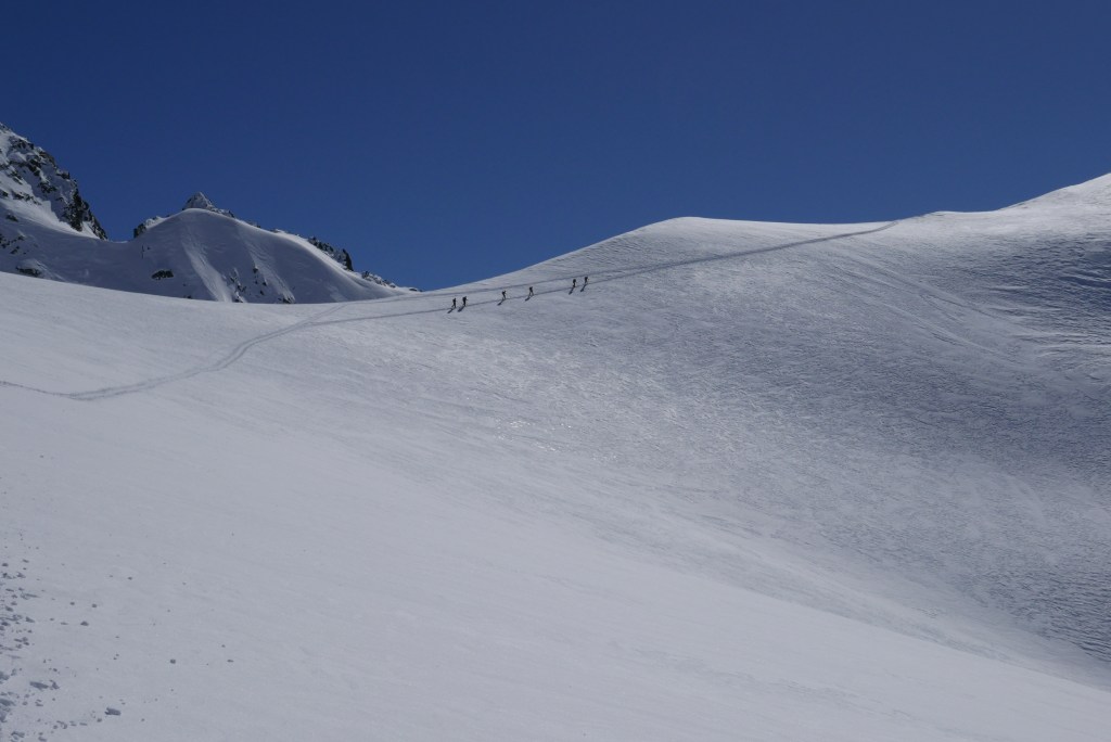 Down to Diavolo Glacier was some more variable skiing through some crust and avy debris. Glacier was well filled in to Fitzimmons Benvolio Col