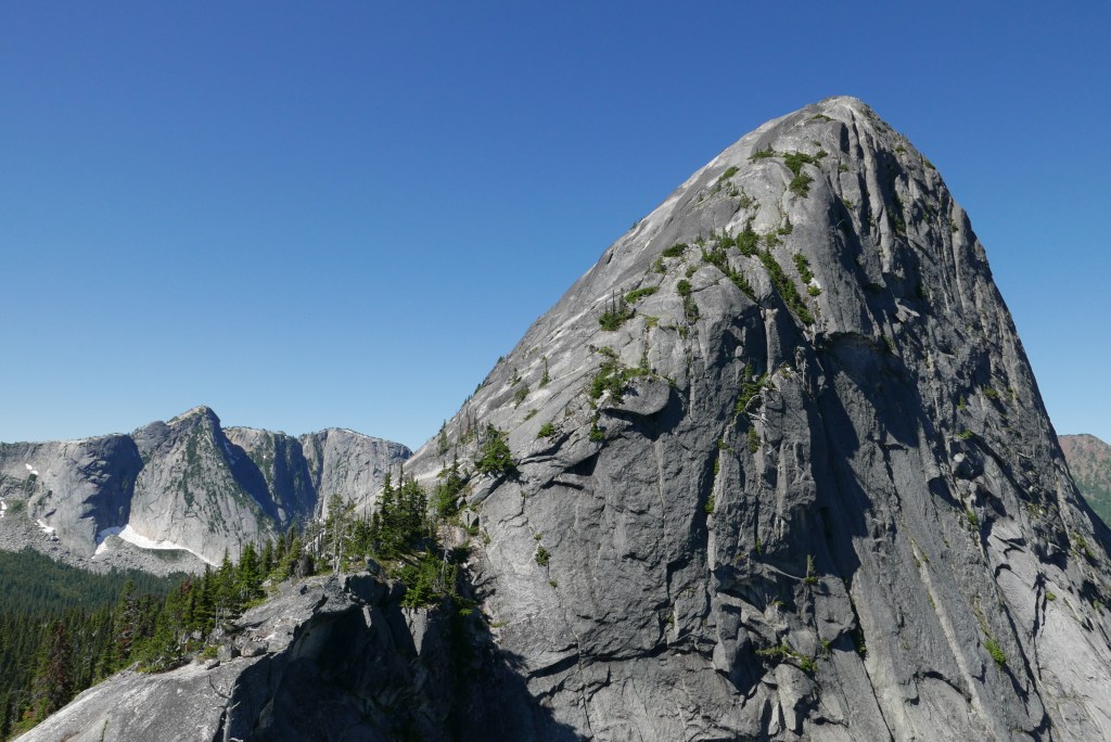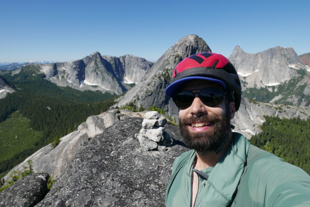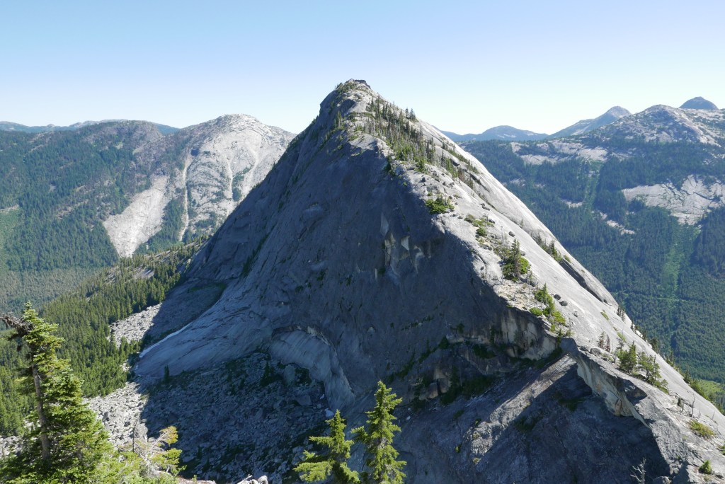 I was hoping for an exposed au cheval along the ridge. But the knife edge ended up being a little blunt and I ended up bear crawling most of it. Still very fun scrambling though! There are quite limited options for protection along this ridge if you wanted to pitch it out. The first step in the ridge I bypassed climbers right along a thin dirty ledge. There was another final step up a rotten gulley just before the summit. Not fancying the crumbling granite, I looked around until I found an easy bypass walking along an exposed ledge far to the climbers left. Overall the 5.2 grade felt very reasonable, and probably climbs easier than a number of old school “4th class” routes.