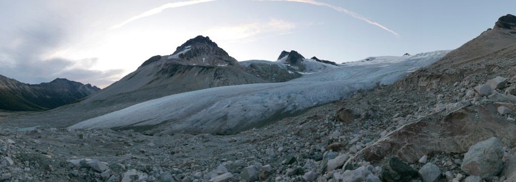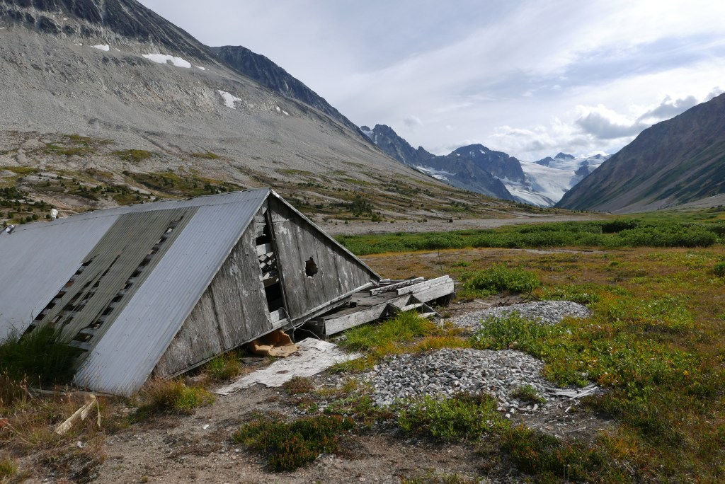 It was nice to get back on the solid glacier and off the loose scree and talus. I filled up my water with some deliciously crisp glacier melt. On the way back to camp we detoured to a gorgeous little lake with a sandy beach and striking views of the glacier. At this point all the other parties had left the valley and we had the entire place to ourselves for a nice skinny dip in the lake. We then walked over to the derelict mining cabin. It’s a snippet of history, but also a shame to see so much junk left in an otherwise pristine valley.