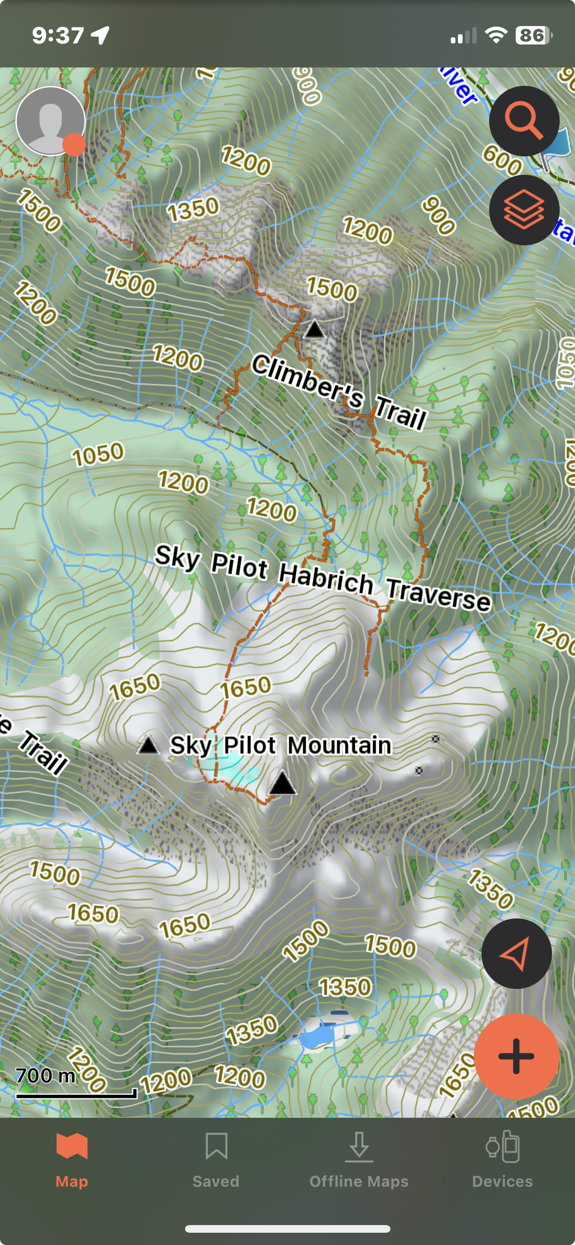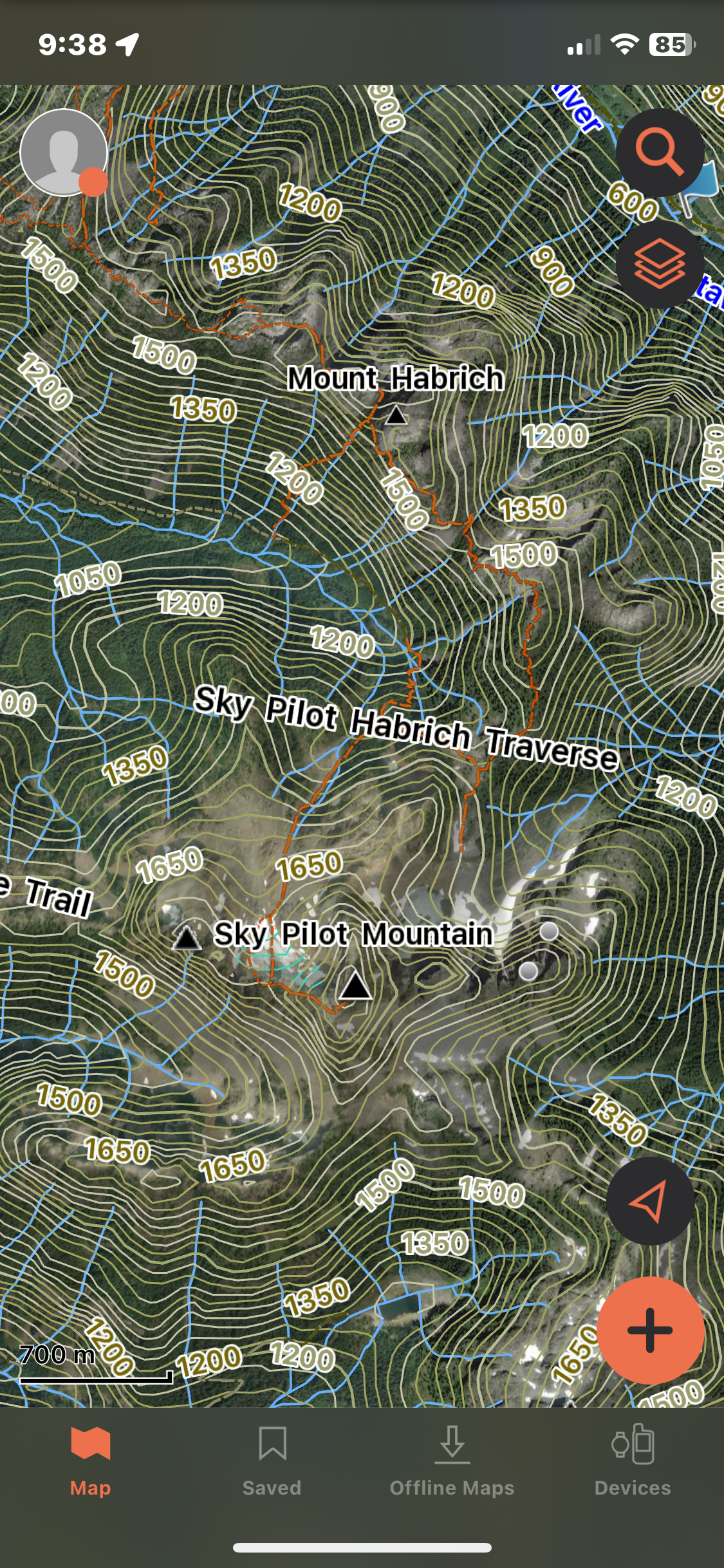 Nothing particularly special about garmin explore, but I would recommend everyone has a basic app that allows them to download good quality topo maps. I like that this app also allows you to save satellite imagery. I avoid using a 3D app in the backcountry as they tend to use much more battery. It’s not a perfect app. It features slightly awkward 30m topo intervals. Additionally, it has a glitchy route planning tool that often completely misjudges distance and vert. That said it has been functional for my use.