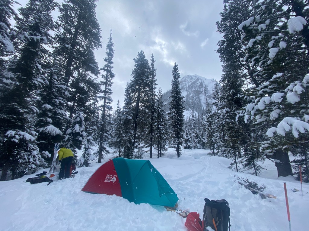 Soon after arriving and setting up camp I found myself wallowing waist deep up a couloir. It would be a good weekend!