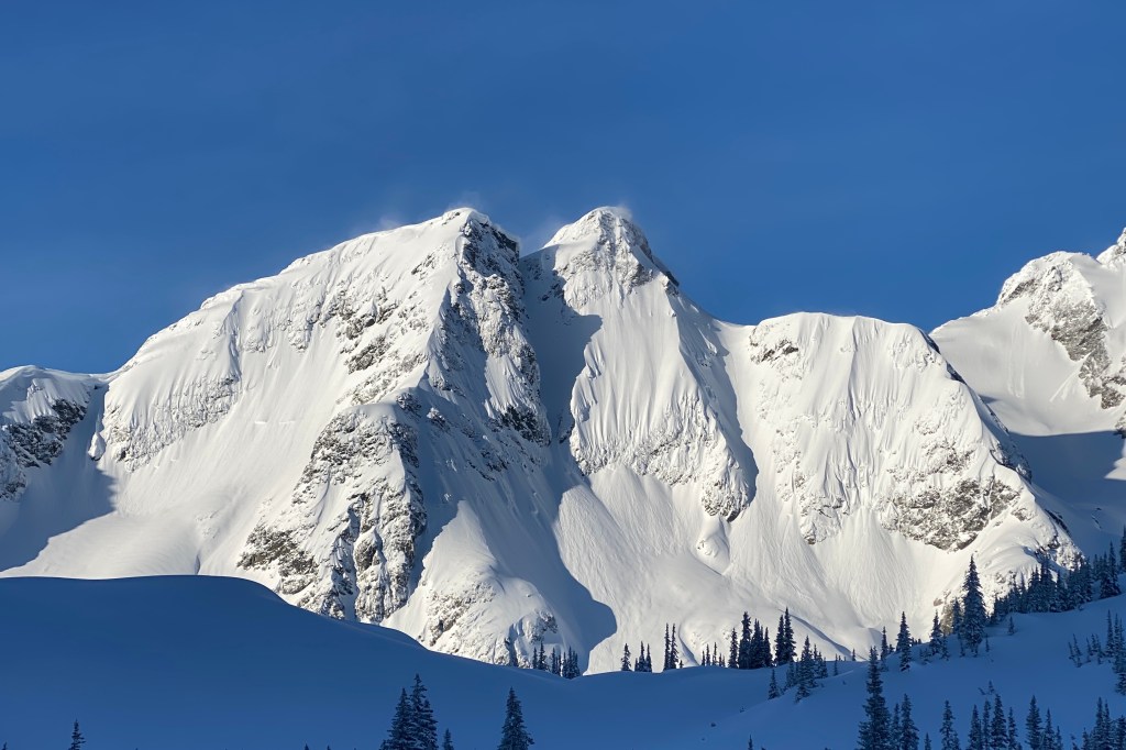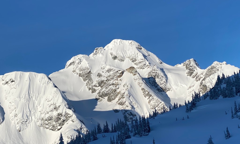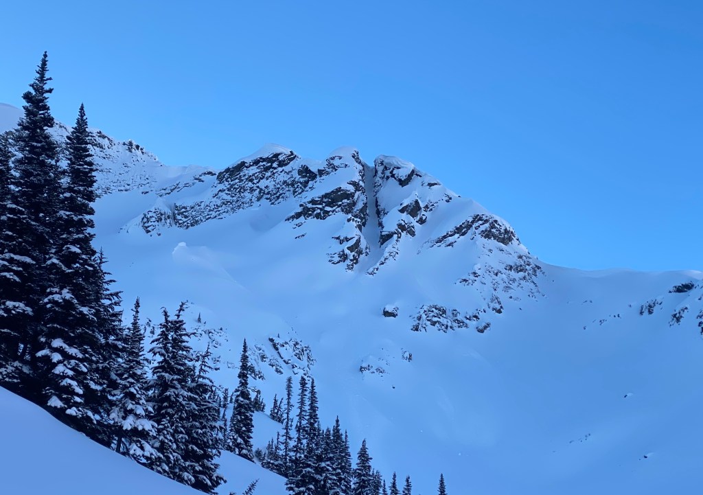 After a chilly morning start jamming feet into frozen ski boots we skinned up the valley towards Duke-Vantage Col. As we made our way into the treeline the rising sun started lighting up the nearby peaks. No matter how many trips I do into the mountains, those moments of golden hour light never get old.